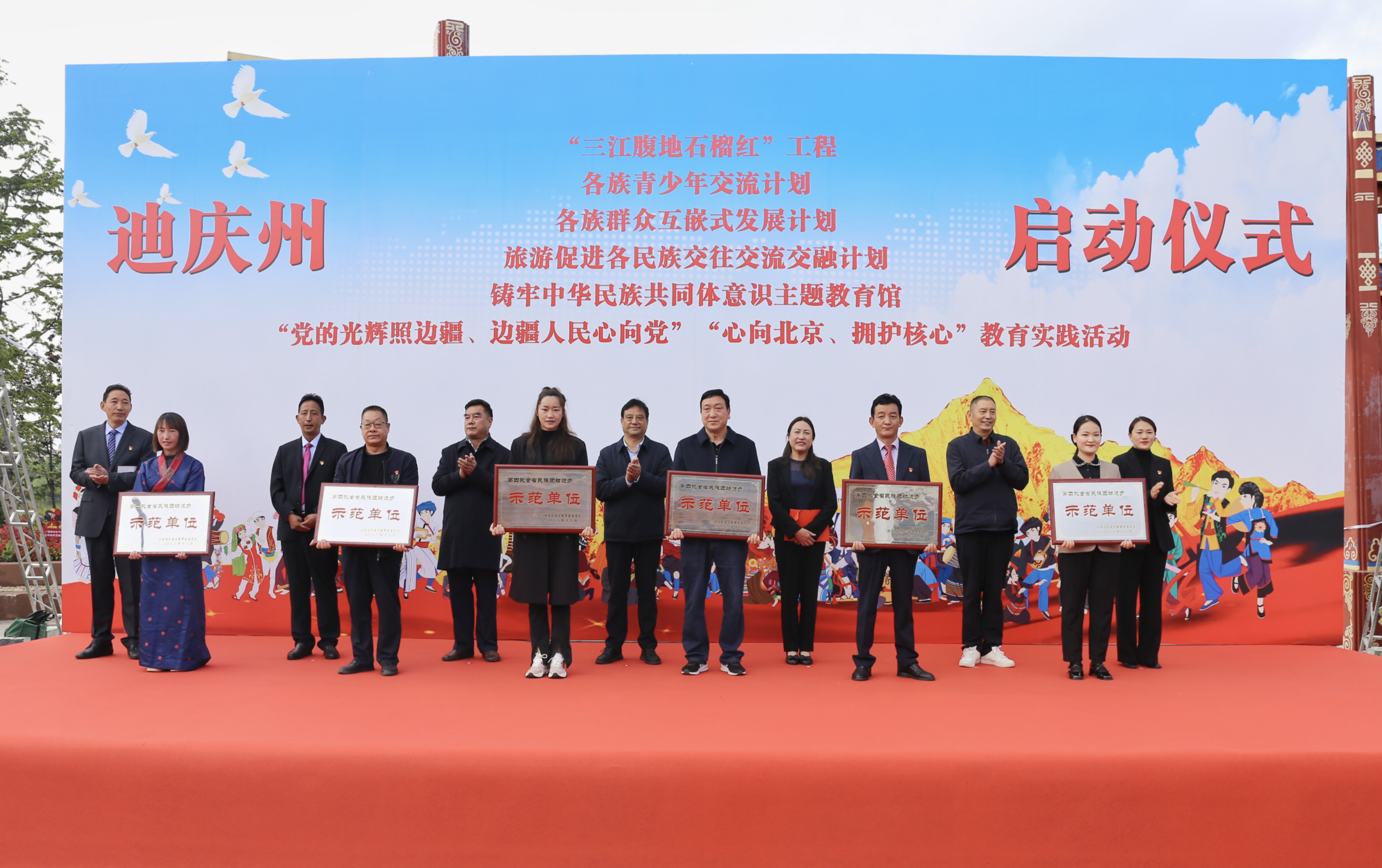 啟動(dòng)儀式上,迪慶紅軍長征博物館被授予“云南省鑄牢中華民族共同體意識(shí)教育實(shí)踐基地”牌匾,并向2022年榮獲“云南省民族團(tuán)結(jié)進(jìn)步示范單位”的代表授牌。