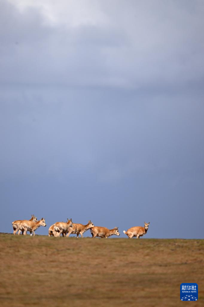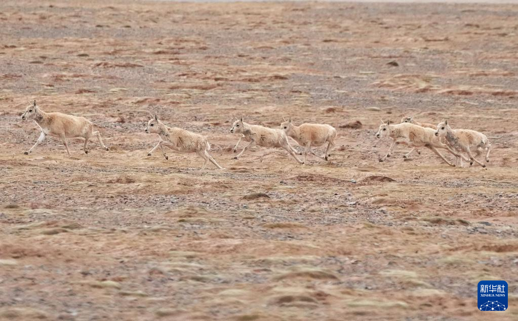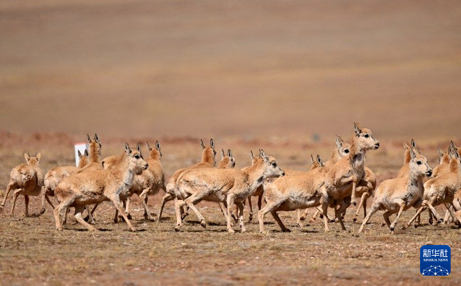 6月16日在可可西里卓乃湖區(qū)域拍攝的一群藏羚羊。 新華社記者 薛玉斌 攝