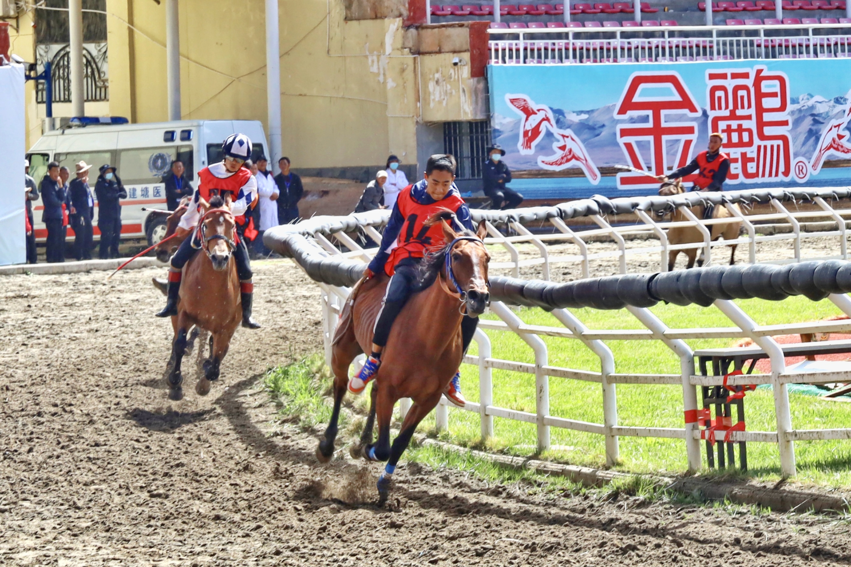 魯茸汪小是香格里拉市格咱鄉(xiāng)人,雖然今年才15歲,但從他對(duì)馬習(xí)性的熟悉和照顧馬匹的嫻熟程度可以看出,他已經(jīng)是騎馬的老手了。此次端午賽馬節(jié)他參加了三個(gè)項(xiàng)目,并在乙組1000米速度賽馬中以1分18.903秒斬獲金牌,在丙組3000米及丙組1000米速度賽中分別以4分21.239秒、1分19.780秒獲得第二名。尤其在乙組1000米速度賽中,前半程他與搭檔馬匹“超音速”一直處于落后狀態(tài),幾乎與名次無(wú)緣,直到賽程過(guò)半,“超音速”展示出了驚人的爆發(fā)力,奮起直追一路反超,拿下了金牌?!霸跊](méi)有提前訓(xùn)練到的情況下,還能拿到名次,我很高興!”魯茸汪小說(shuō)道。由于端午節(jié)前夕他一直在學(xué)校上課,并沒(méi)有時(shí)間提前練習(xí),但他仍然堅(jiān)持報(bào)名參賽。