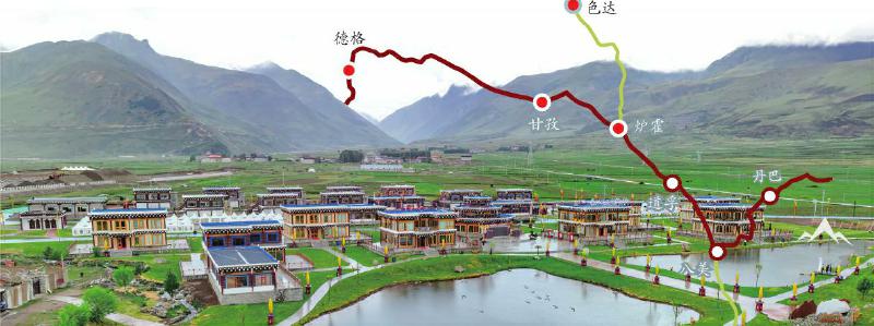甘孜縣丹霞小鎮(zhèn)。 洛絨尼瑪 攝 本報制圖/龔武