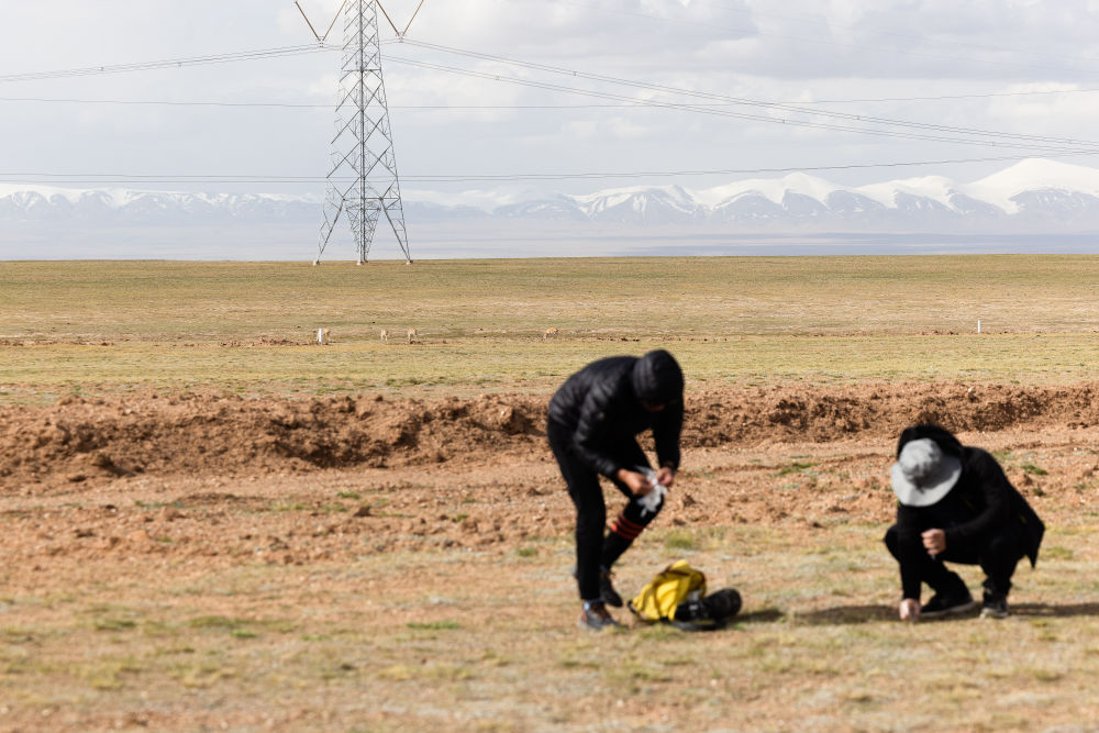 這里是世界自然遺產(chǎn)地可可西里,兩人是中國(guó)科學(xué)院西北高原生物研究所研究員連新明和他的學(xué)生王東。