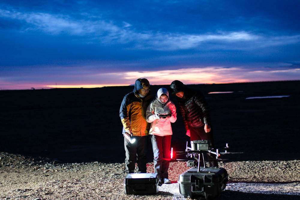 6月16日凌晨,連新明團(tuán)隊(duì)在青藏公路楚瑪爾河大橋附近,使用無(wú)人機(jī)監(jiān)測(cè)藏羚羊遷徙途中的夜宿地。