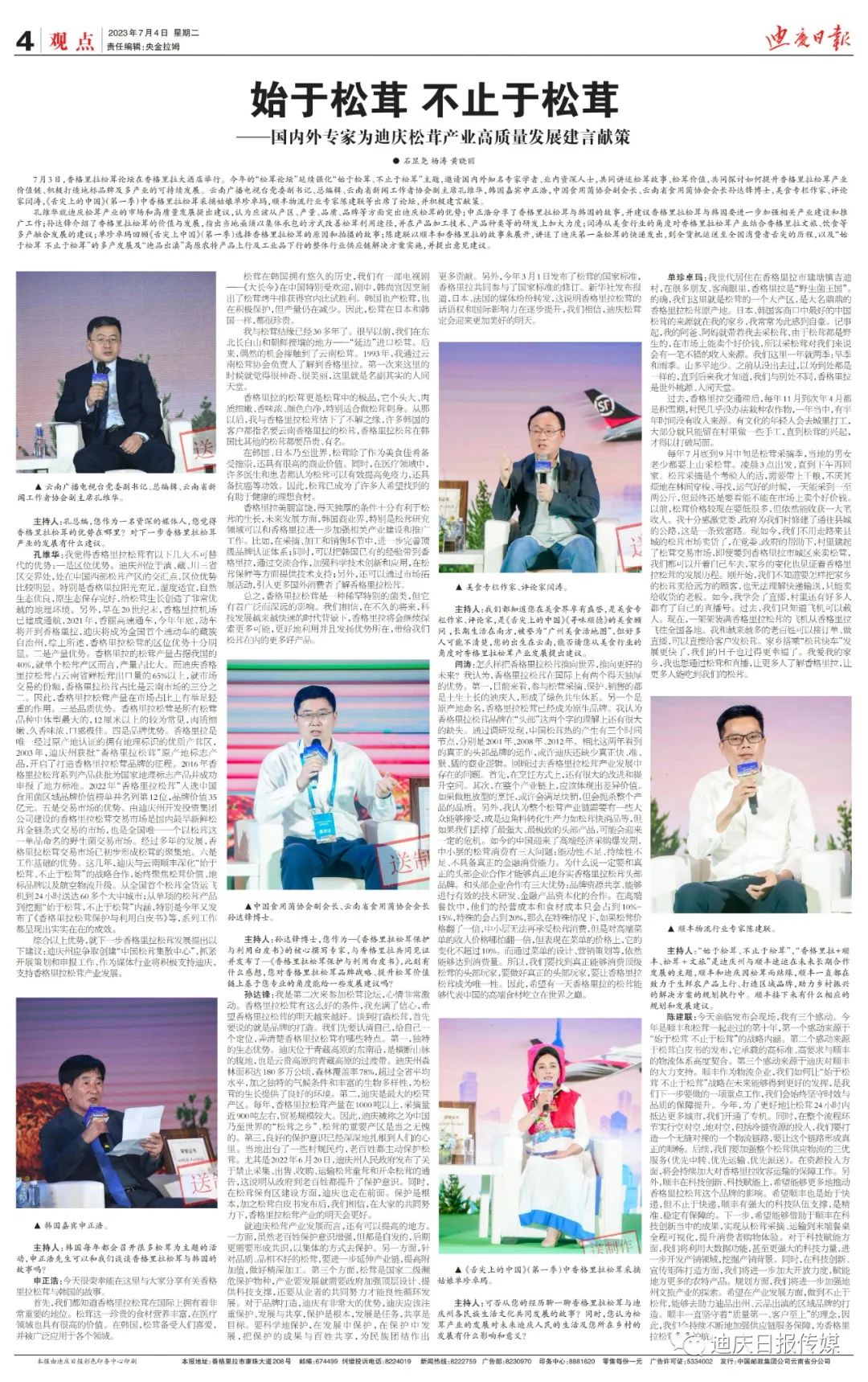 【關注】明日出版的《迪慶日報》第四版將整版刊登國內外專家對迪慶松茸產業(yè)高質量發(fā)展給出的建議