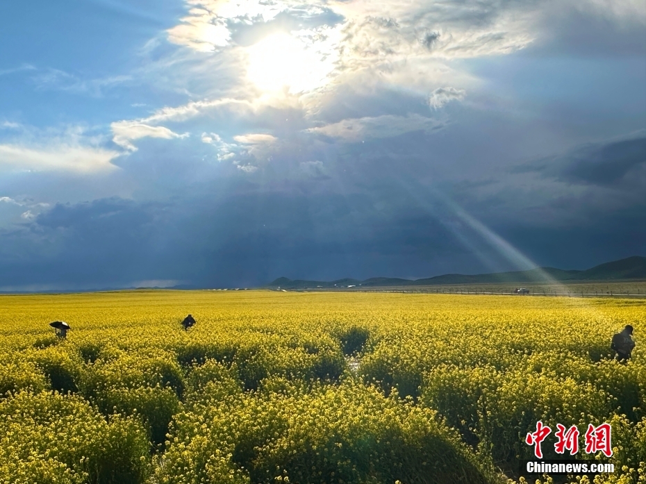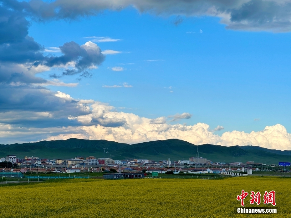盛夏七月,在四川省阿壩藏族羌族自治州若爾蓋縣唐克鎮(zhèn)白河牧場,一片萬畝油菜花開得正艷。據(jù)若爾蓋縣科學(xué)技術(shù)和農(nóng)業(yè)畜牧局副局長徐建平介紹,與平原內(nèi)陸地區(qū)不同的是,地處若爾蓋高原的白河牧場,種植的是春油菜,一般5月中旬播種完成,6月底至7月份正是油菜花盛開的季節(jié)。錢姣姣 攝