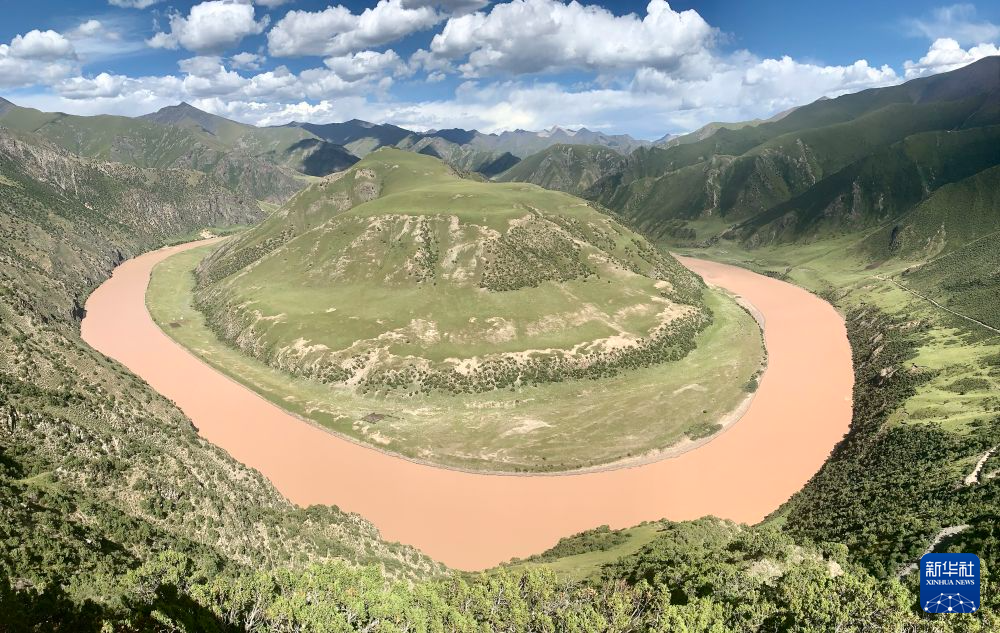 長(zhǎng)江上游,通天河在青海省玉樹(shù)藏族自治州治多縣立新鄉(xiāng)葉青村環(huán)繞山體構(gòu)成一個(gè)完美的弧度,形成了今日的網(wǎng)紅打卡地——萬(wàn)里長(zhǎng)江第一灣。這里地形奇異,山水融合,有著宜人的自然風(fēng)光。