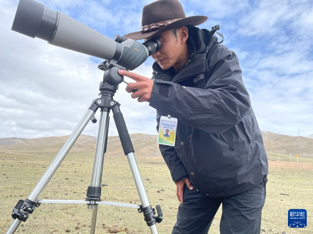 濕地生態(tài)管護(hù)員在青海隆寶國(guó)家級(jí)自然保護(hù)區(qū)觀察野生動(dòng)物。新華社記者 李琳海 攝