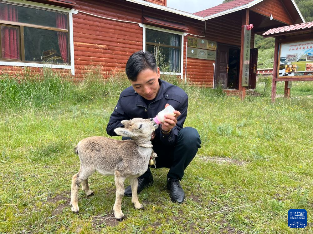 “咩,咩”……門外傳來羊羔的叫聲,旦增拉巴拿著剛剛加熱的奶瓶,向外走去?!斑@只羊羔是我們今年5月從野外救助回來的,當時因母羊被雪豹獵食,小羊落單后被我們發(fā)現了?!钡┰隼蛯⑿⊙驍堅诟埃炀毜亟o它喂奶,儼然一位“奶爸”。
