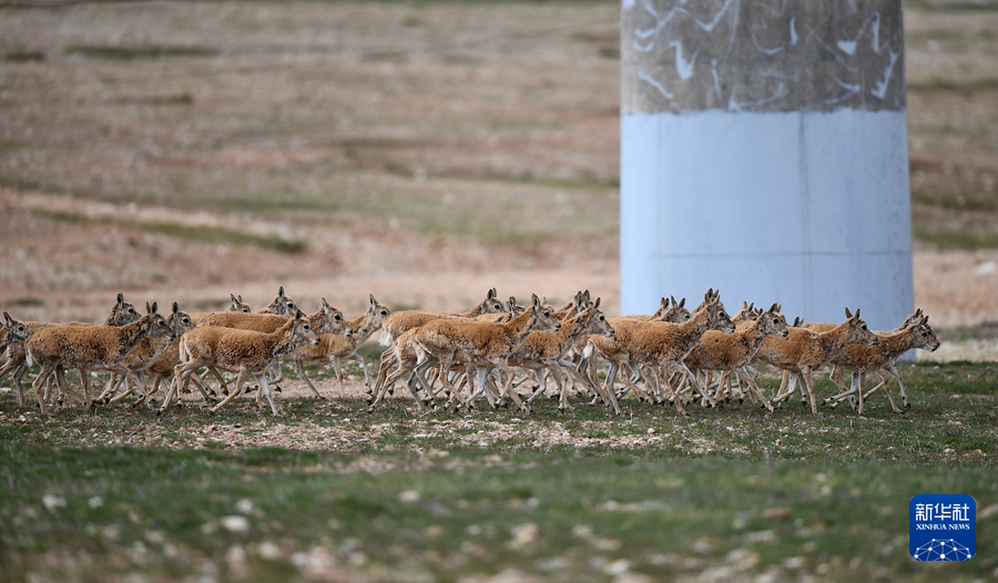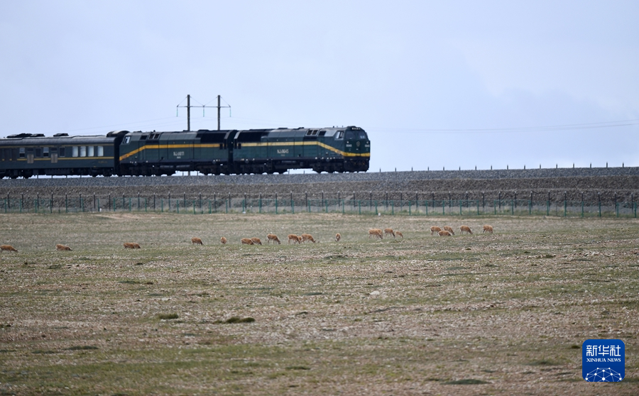 7月28日,一群藏羚羊在青藏鐵路沿線活動(dòng)。新華社記者 張宏祥 攝