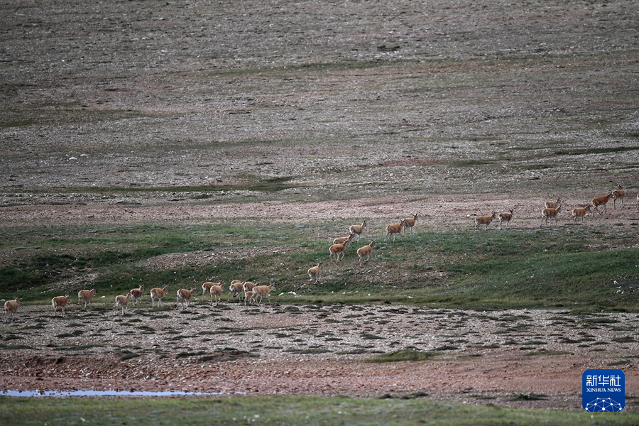 7月28日,一群藏羚羊在可可西里境內(nèi)活動(dòng)。新華社記者 韓方方 攝