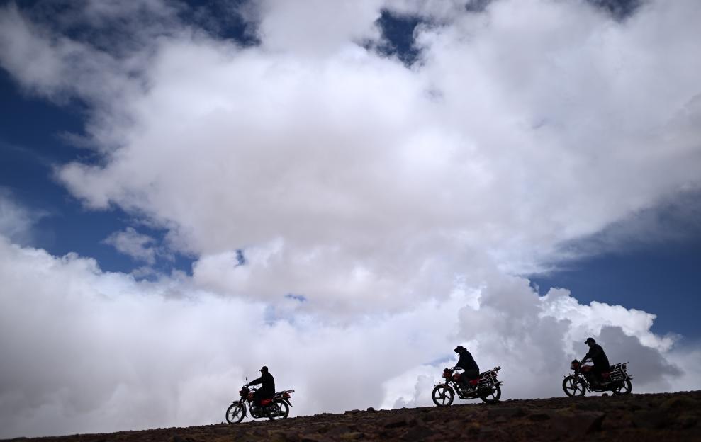 可可西里管理處卓乃湖保護(hù)站隊(duì)員在卓乃湖附近騎行巡護(hù)(6月17日攝)。新華社記者 張宏祥 攝