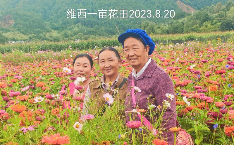 楊躍成把花卉基地起名為“一畝花田”,其實(shí)不止一畝。今年6月中旬開始,各種花卉爭(zhēng)奇斗艷、競(jìng)相綻放。金燦燦的萬壽菊、金雞菊、格桑花等匯成了花的海洋,成為永春鄉(xiāng)拖枝村的一道靚麗風(fēng)景線,每天都有維西縣城市民及周邊游客前來看花賞景,特別是周末游客絡(luò)繹不絕。