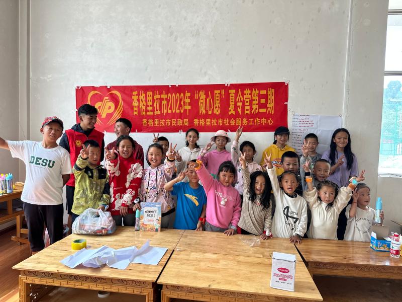 近日,由香格里拉市民政局、香格里拉市社會(huì)服務(wù)工作中心共同舉辦的尼西鄉(xiāng)2023年“微心愿”夏令營(yíng)第三期暨護(hù)童成長(zhǎng)活動(dòng)在《明天更美好》的合唱中順利結(jié)營(yíng),其間開(kāi)展兒童游園、才藝表演、表彰獲獎(jiǎng)小朋友和優(yōu)秀志愿者。此次夏令營(yíng)為期15天,來(lái)自尼西鄉(xiāng)幸福村、江東村、新陽(yáng)村和湯滿村的153名小朋友和16名志愿者參加夏令營(yíng),開(kāi)設(shè)作業(yè)輔導(dǎo)課程,舉行羽毛球、乒乓球、跳繩、丟沙包等運(yùn)動(dòng)項(xiàng)目,幫助孩子們提高學(xué)習(xí)成績(jī)、增強(qiáng)身體素質(zhì)、培養(yǎng)團(tuán)隊(duì)意識(shí),在運(yùn)動(dòng)中收獲健康和快樂(lè)。圖為小朋友們?cè)诨顒?dòng)中表達(dá)“微心愿”。