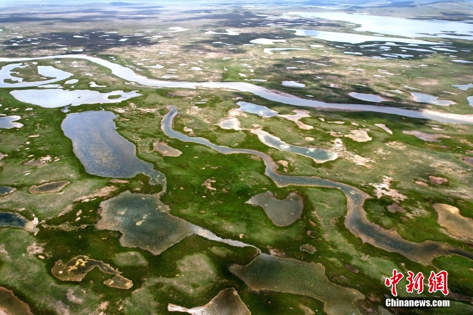 8月24日,航拍青海省果洛藏族自治州瑪多縣星星海風光?,敹嗫h地處三江源國家級自然保護區(qū)核心腹地,素有“黃河源頭第一縣”“千湖之縣”美譽。星星海由大大小小的湖泊、水泊組成,從空中俯瞰無數(shù)湖泊宛如繁星。(無人機照片)中新社發(fā) 薛蒂 攝