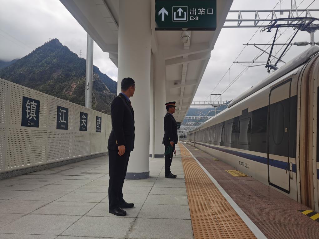 試驗(yàn)列車在川青鐵路鎮(zhèn)江關(guān)站。(中國鐵路成都局集團(tuán)有限公司供圖)