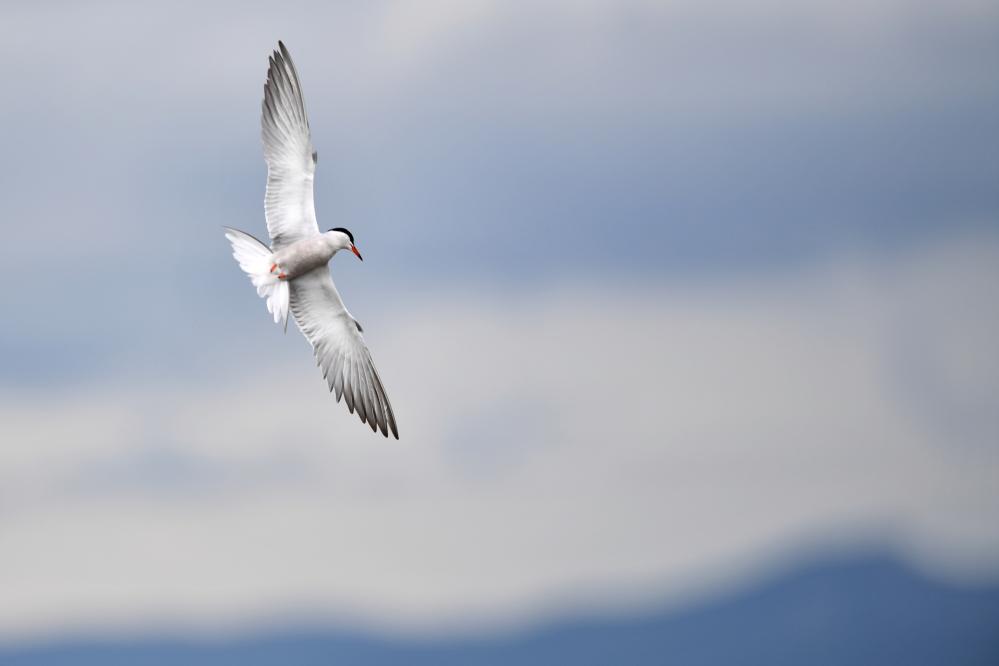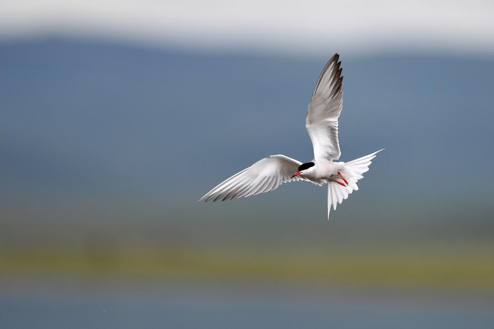 一只燕鷗在甘肅尕海則岔國家級自然保護(hù)區(qū)的尕海濕地上飛翔。 新華社記者 陳斌 攝