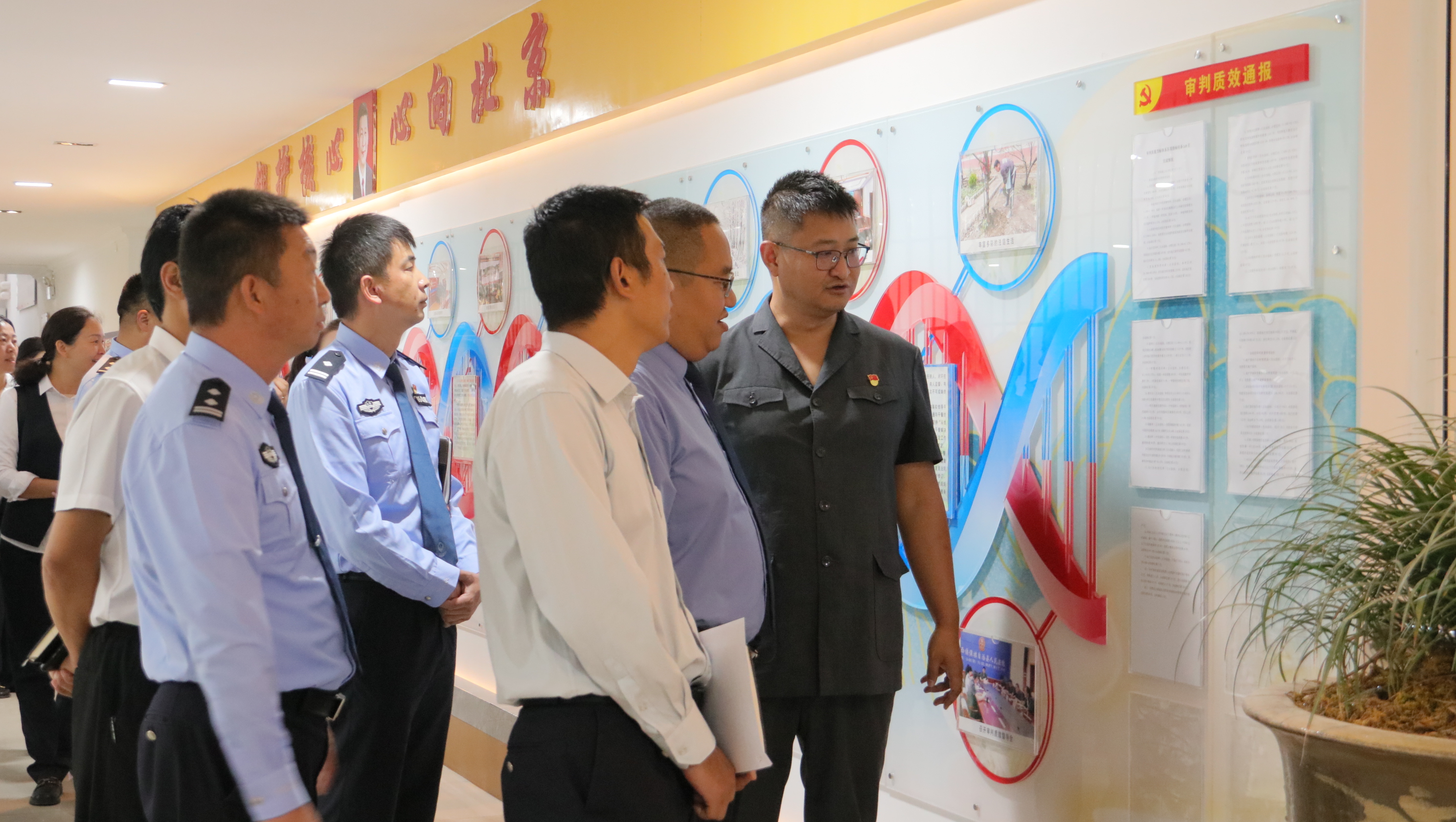 與法同行“零距離”。升旗儀式后,全體同志跟隨講解員進入審判大樓,參觀了縣人民法院訴訟服務(wù)中心、黨建文化長廊,詳細了解了“蘭韻傈鄉(xiāng)·紅色天平”黨建文化品牌建設(shè)的特色亮點,通過參觀學(xué)習(xí)打開了政法系統(tǒng)黨組織互幫互學(xué)、共創(chuàng)共贏的新局面。并現(xiàn)場體驗?zāi)M法庭,將法院庭審的真實場景通過情景再現(xiàn)的形式,直觀地展示給在場的黨員干部及工作人員,進行“以案說法、以案示警”。通過“沉浸式體驗”,讓全體黨員親身感受了審判工作氛圍,引導(dǎo)大家進一步筑牢政治忠誠,強化法治思維,牢記初心使命,立足崗位職責(zé),扎實推進全縣政法工作再上新臺階。