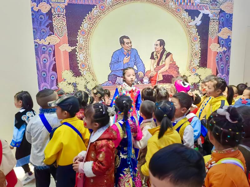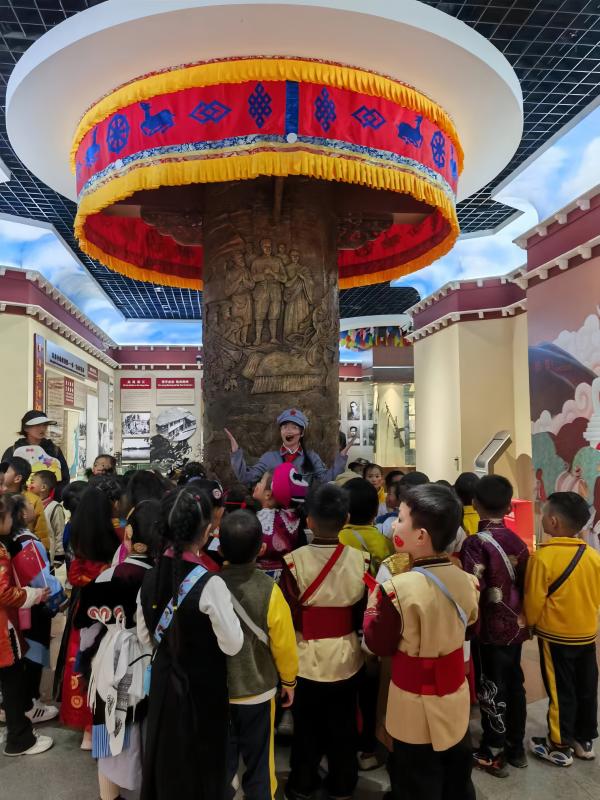 展館內(nèi),“格?;ㄐ⌒≈v解員”進(jìn)行著生動(dòng)地講解,通過(guò)一件件文物、一幅幅圖片、一個(gè)個(gè)互動(dòng)景觀訴說(shuō)雪域高原上的紅色歷史,引導(dǎo)小朋友們體悟那段不平凡的崢嶸歲月,在行走的課堂里收獲知識(shí)和成長(zhǎng)。
