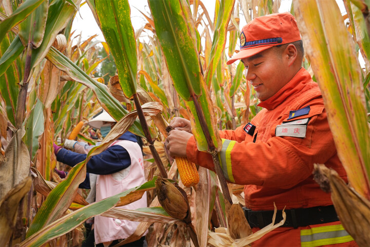 迪慶州森林消防大隊(duì)為老鄉(xiāng)搶收玉米