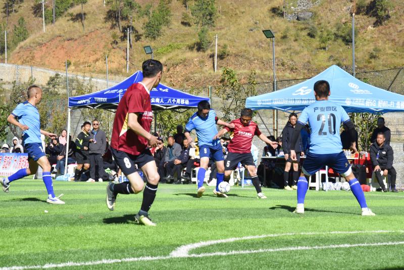 據(jù)了解,“園區(qū)杯”為期3天,共有來自昆明、大理、迪慶的9支代表隊(duì)參賽。比賽采取單循環(huán)積分制的形式進(jìn)行,最終決出冠、亞、季軍?;顒?dòng)旨在以足球運(yùn)動(dòng)為橋梁,積極與省內(nèi)開發(fā)區(qū)、產(chǎn)業(yè)園區(qū),毗鄰縣、市互鑒互學(xué),進(jìn)一步增強(qiáng)園區(qū)干部群眾加快推進(jìn)香格里拉產(chǎn)業(yè)園區(qū)高質(zhì)量發(fā)展的向心力和凝聚力,助力園區(qū)高質(zhì)量發(fā)展。 圖為參賽隊(duì)員正在賽場上奮勇比拼。