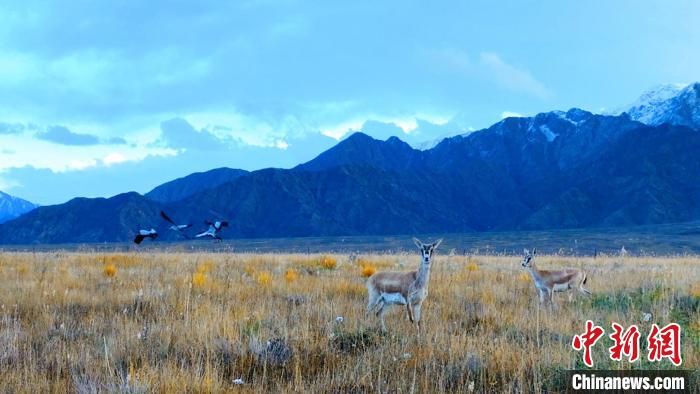 黑頸鶴、鵝喉羚多種野生動(dòng)物“同框”現(xiàn)身青海都蘭湖國家濕地公園