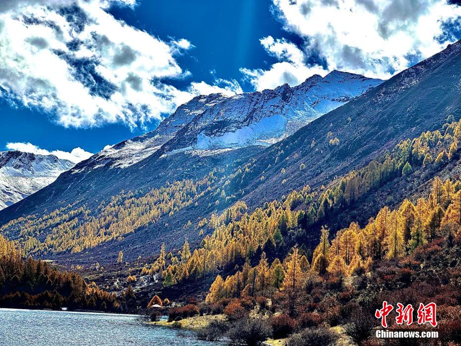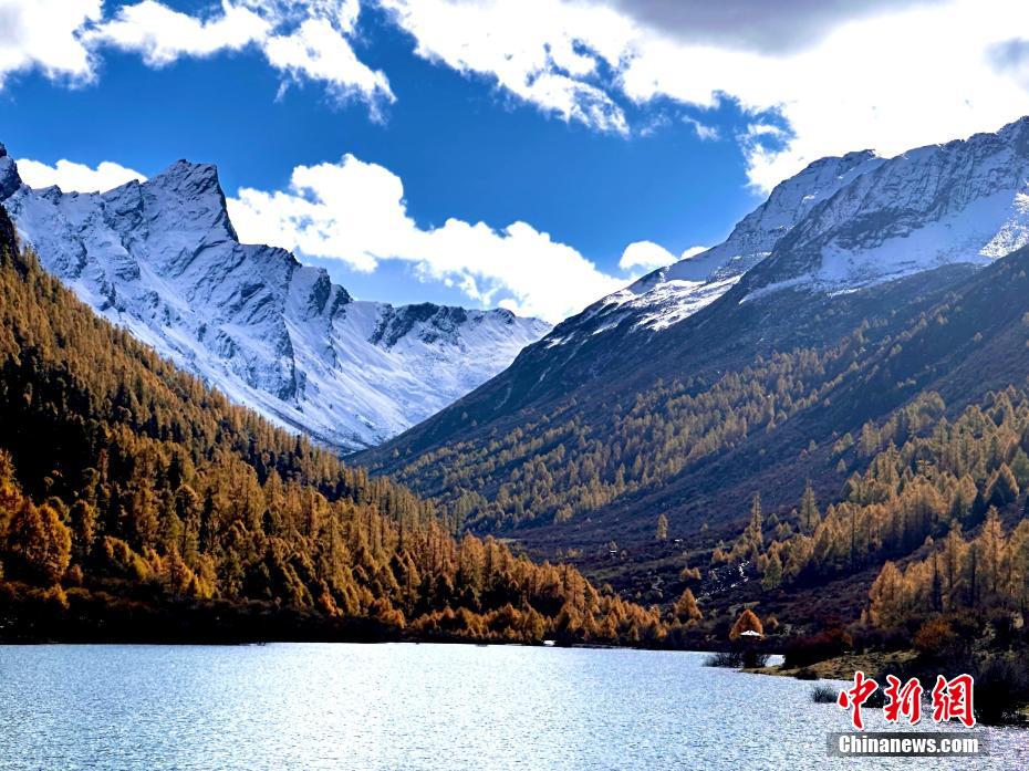 深秋時(shí)節(jié),四川省阿壩州小金縣瑪嘉溝迎來(lái)一年中最美季節(jié),雪山、冰川、海子、針葉林、原始森林等在藍(lán)天白云下變得色彩斑斕,層林盡染,已是一幅半山彩林半山雪的壯觀景象。陳邦亮 攝