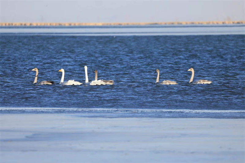 越冬大天鵝為柴達(dá)木盆地增添一份美麗與靈動。安子 攝