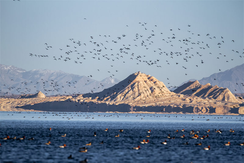 青海省海西州:首批越冬候鳥飛抵柴達(dá)木盆地托素湖