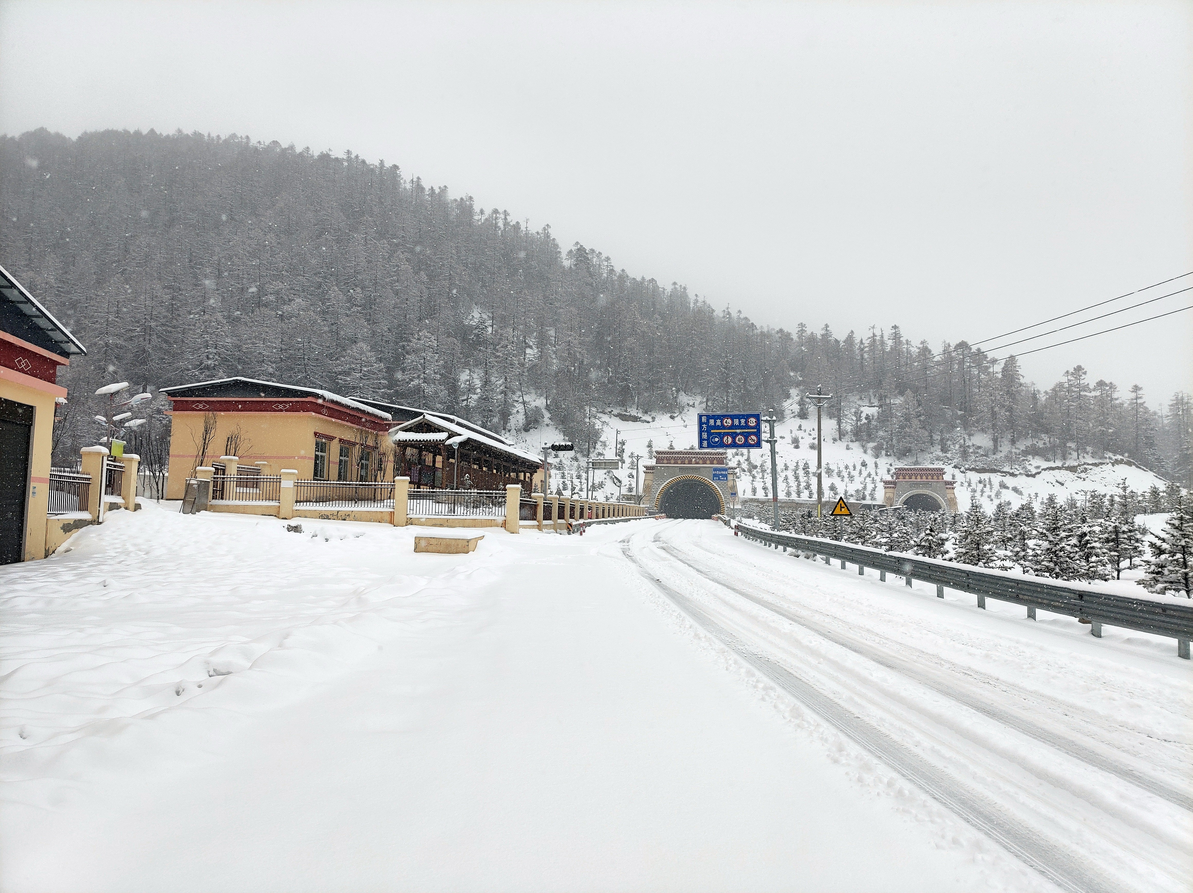 12月8日,德欽縣境內普降大雪,記者從德欽縣公路分局了解到,截至目前,受雨雪天氣影響,G214K1961+000-2010+000德欽隧道至奔子欄書松加水站路面積雪平均厚度12cm,目前,該路段實行交通管制。