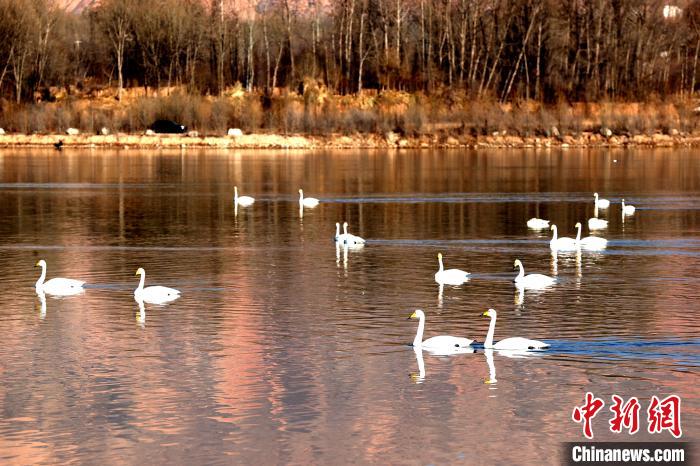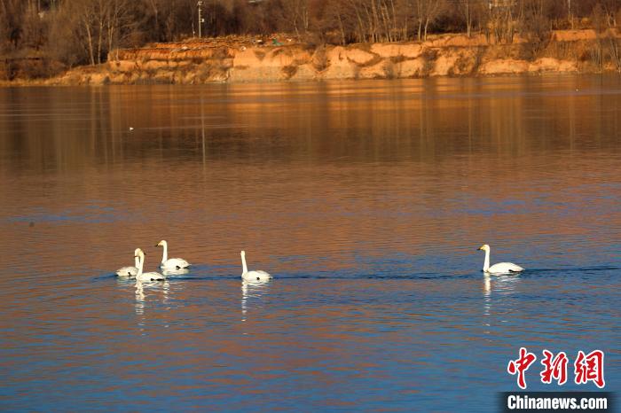 青海:野生大天鵝群在黃河越冬 高原冬日添靚景