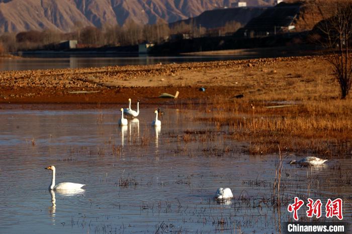 青海越冬大天鵝樂(lè)享“天下黃河貴德清”