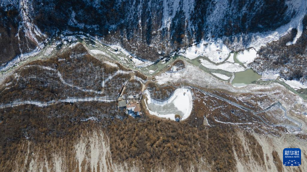 這是1月10日拍攝的海螺溝月亮湖(無(wú)人機(jī)照片)。新華社記者 胥冰潔 攝