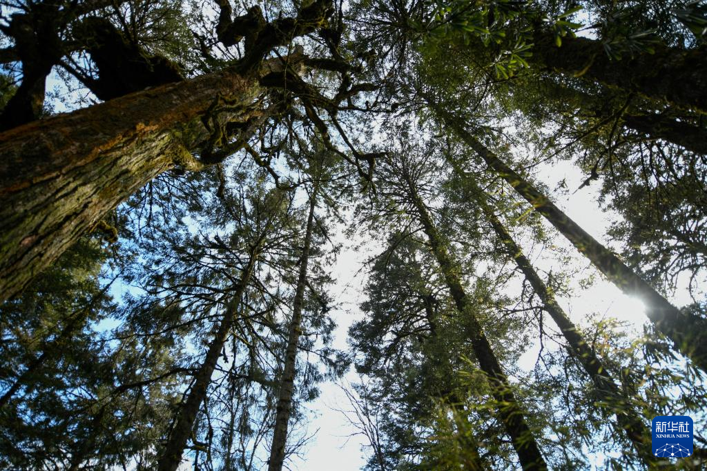 這是1月10日在海螺溝景區(qū)草海子步游道上拍攝的杉樹(shù)。新華社記者 胥冰潔 攝