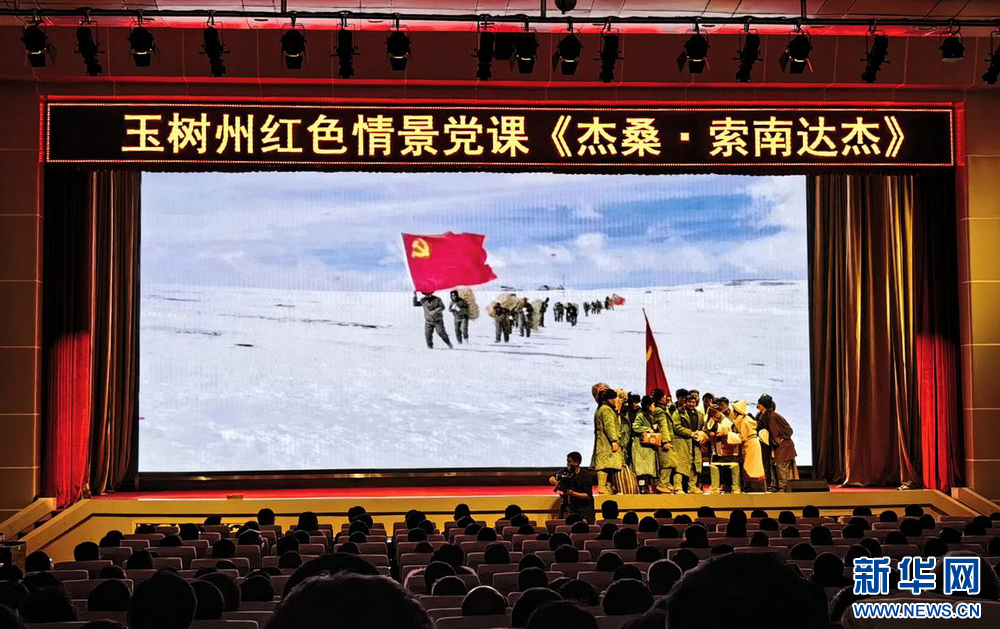 圖為紅色情景黨課《杰桑·索南達杰》演出現(xiàn)場。(2023年12月18日攝) 新華社記者 柳澤興 攝