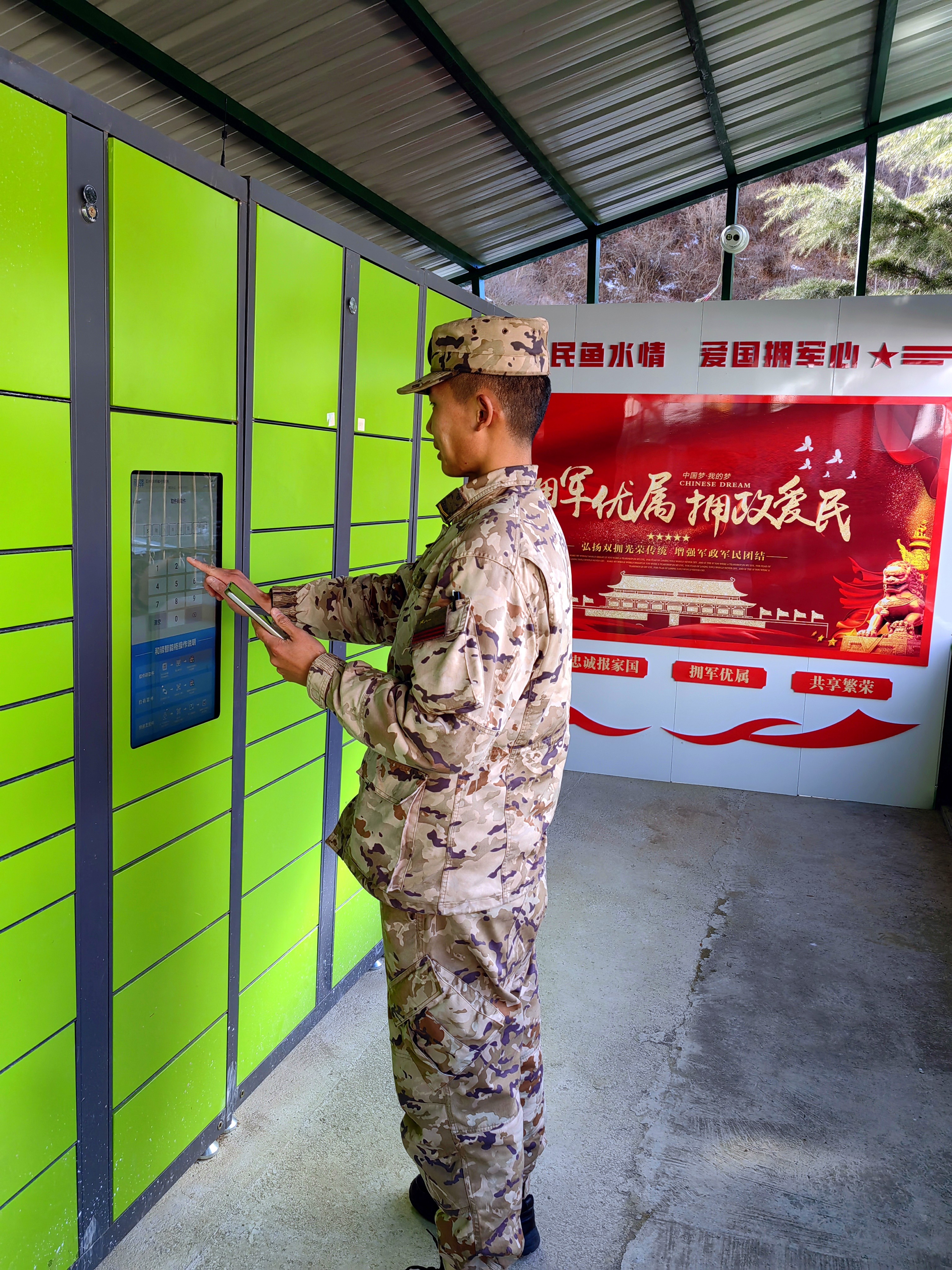 由于武警德欽中隊(duì)駐地距離德欽縣城快遞站較遠(yuǎn),收發(fā)快遞成為部隊(duì)官兵的一大難題,德欽縣愛(ài)心企業(yè)喀輿貢囧速遞有限責(zé)任公司了解到情況后,主動(dòng)聯(lián)系德欽縣雙擁辦,積極伸出援助之手,為擁軍暖心驛站免費(fèi)贈(zèng)送一組智能快遞柜,及時(shí)將快遞配送至擁軍暖心驛站。如今,部隊(duì)官兵只需通過(guò)手機(jī)掃描快遞柜的二維碼便可自主領(lǐng)取快遞,這一援助之舉實(shí)實(shí)在在為駐地官兵解決了收發(fā)快遞難題。