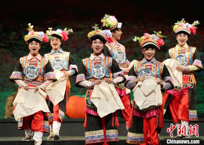 2021年5月17日晚,甘肅甘南州藏族歌舞劇院演出的音樂劇《達(dá)瑪花開》在蘭州首演。(資料圖)閆姣 攝