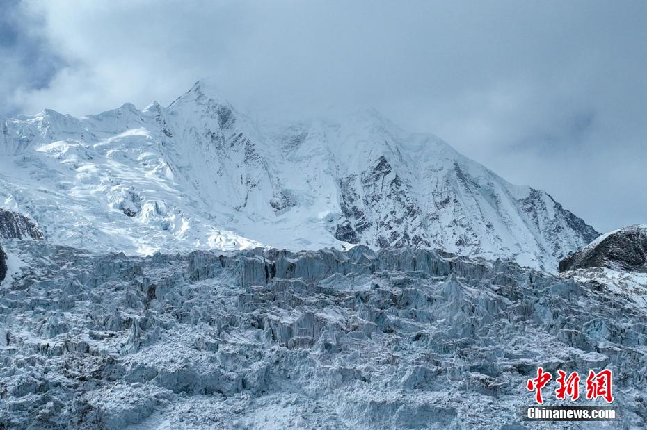 2月2日,四川省甘孜藏族自治州瀘定境內(nèi),一場雪后的貢嘎山披上了厚厚的“白紗”,在貢嘎山東坡順山而下的冰川沿海螺溝山谷綿延10多公里,就像一條“巨龍”盤在山谷中,十分壯觀。貢嘎山坐落于橫斷山系大雪山中段,主峰海拔7756米,被譽(yù)為蜀山之王。海螺溝冰川也是貢嘎山數(shù)十條冰川中規(guī)模最大、形態(tài)最美的一條。經(jīng)歷了2022年“9·5”瀘定地震后,海螺溝景區(qū)道路等重建工作完成,步游道、旅游服務(wù)設(shè)施升級,游客逐步回升。航拍鏡頭下的海螺溝冰川粒雪盆下端的“冰川冰”。記者 劉忠俊 攝