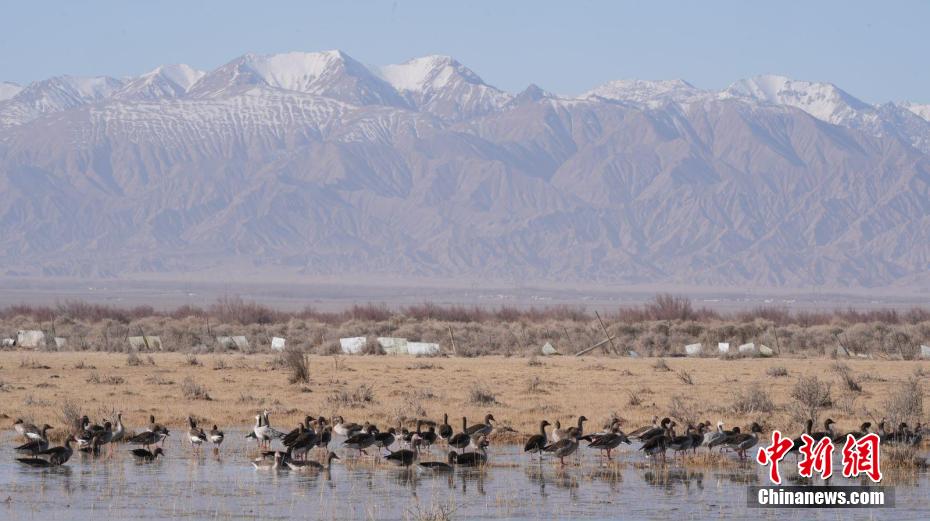 近日,隨著天氣轉(zhuǎn)暖,在青海省柴達(dá)木盆地,大批國家二級重點(diǎn)保護(hù)野生動物灰鶴聚集于都蘭縣巴隆鄉(xiāng)。此外,野生天鵝、斑頭雁、黃鴨、赤麻鴨等鳥類也聚集于此,或展翅高飛,或覓食嬉戲,在候鳥遷徙季勾勒出一幅山水靜好、飛鳥翔集的美麗生態(tài)畫卷。