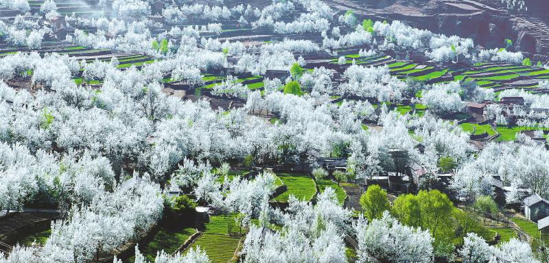 3月17日,四川省阿壩州金川縣萬畝梨花綻放,滿山遍野,雪白的梨花,隨風(fēng)飄絮,藍(lán)天白云,花海飄香,令人陶醉。吸引眾多游客前來游覽、拍照。[詳細(xì)] -