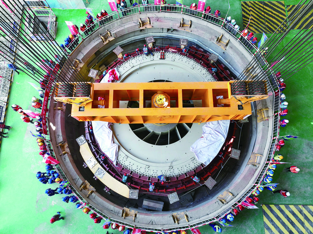 黃河羊曲水電站首臺機組轉(zhuǎn)子吊裝完成。 黃河公司供圖