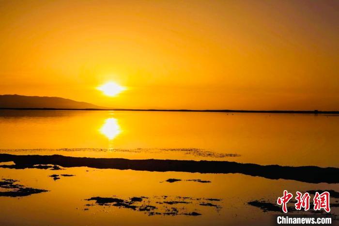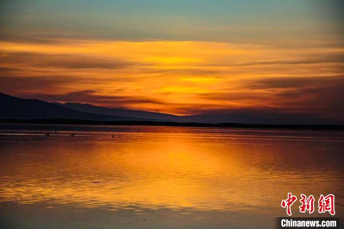 圖為青海湖夕陽如夢如幻。趙海梅 攝