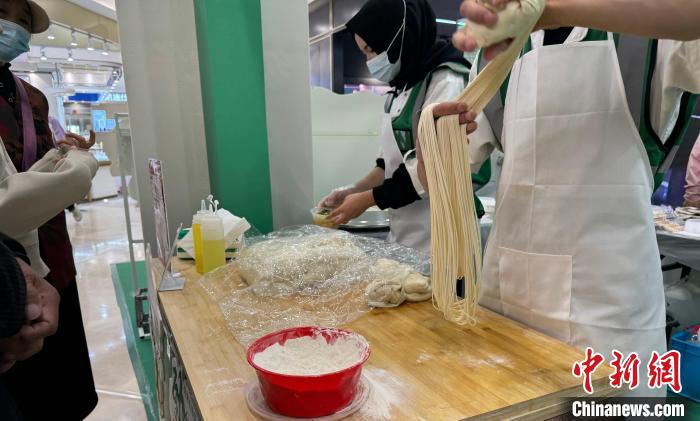 圖為拉面師傅在展示區(qū)內(nèi)拉拉面。陳宗淇 攝