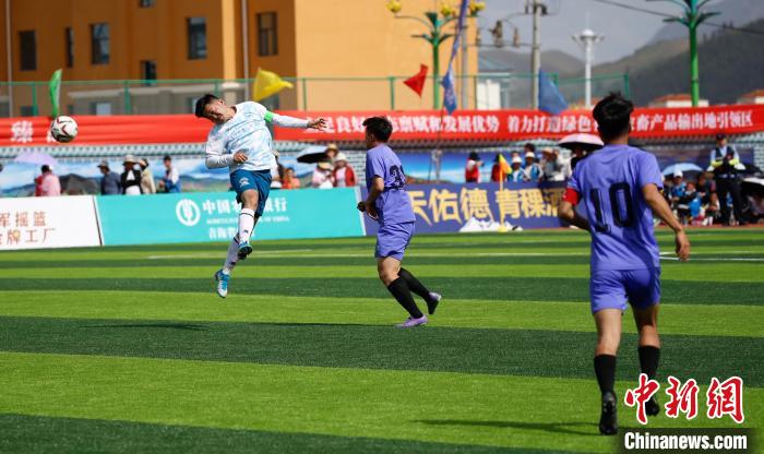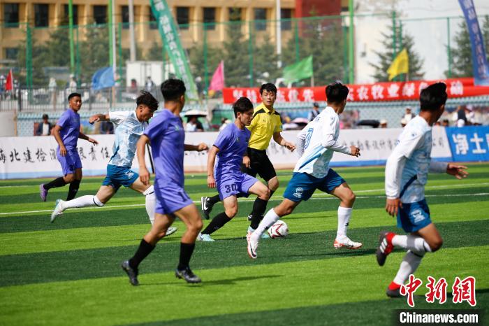 5月25日,“大美青?!じ咴闱颉背?jí)聯(lián)賽海北賽區(qū)首場(chǎng)比賽,在平均海拔2866米的青海省海北藏族自治州門(mén)源回族自治縣進(jìn)行,海北祁連山藏羊隊(duì)主場(chǎng)3:1戰(zhàn)勝海西柴達(dá)木枸杞隊(duì),迎來(lái)開(kāi)門(mén)紅?,F(xiàn)場(chǎng)兩萬(wàn)多名觀眾為隊(duì)員們吶喊助威,賽場(chǎng)外,70余種海北州特優(yōu)農(nóng)畜產(chǎn)品吸引民眾品嘗購(gòu)買(mǎi)。