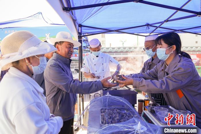圖為民眾在賽場(chǎng)外品嘗海北州特色美食。馬銘言 攝