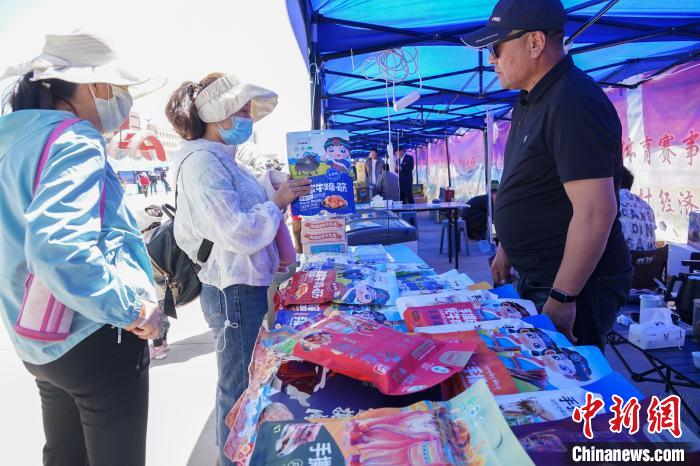 圖為民眾在賽場(chǎng)外購(gòu)買(mǎi)海北州特優(yōu)農(nóng)畜產(chǎn)品。馬銘言 攝