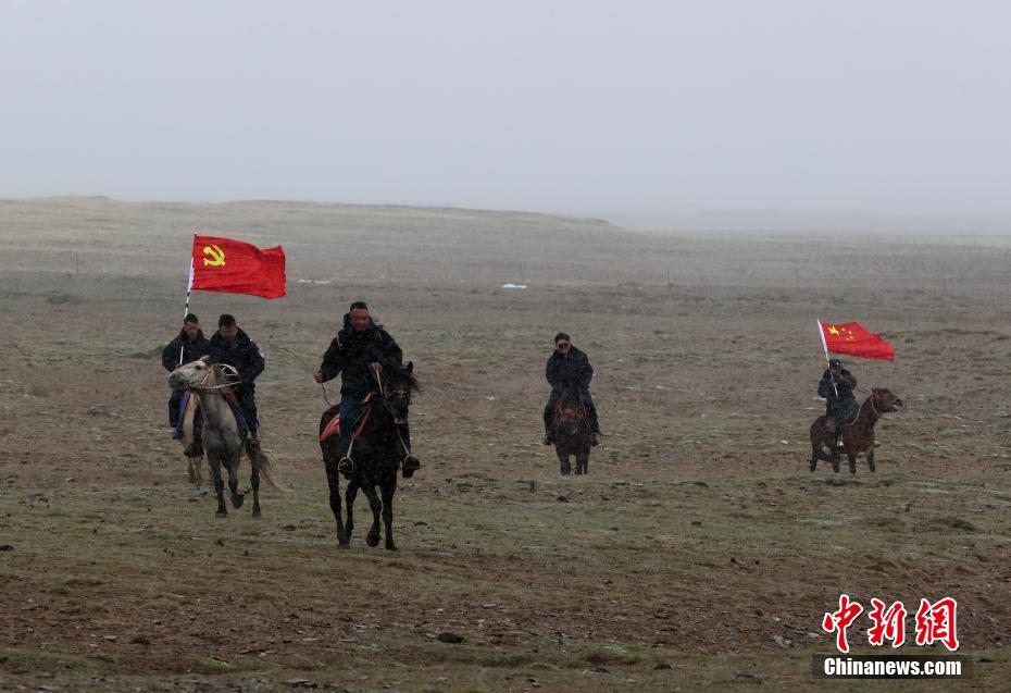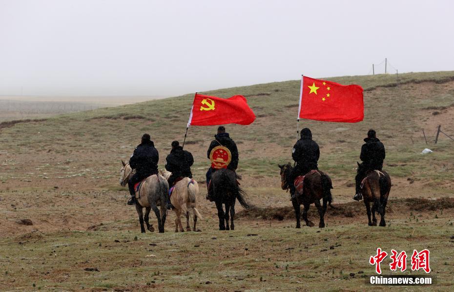 6月3日,在青海省果洛藏族自治州瑪多縣花石峽鎮(zhèn),瑪多縣人民法院“馬背法庭”的法官頂風前往牧民家中進行訴前調(diào)解。薛蒂 攝