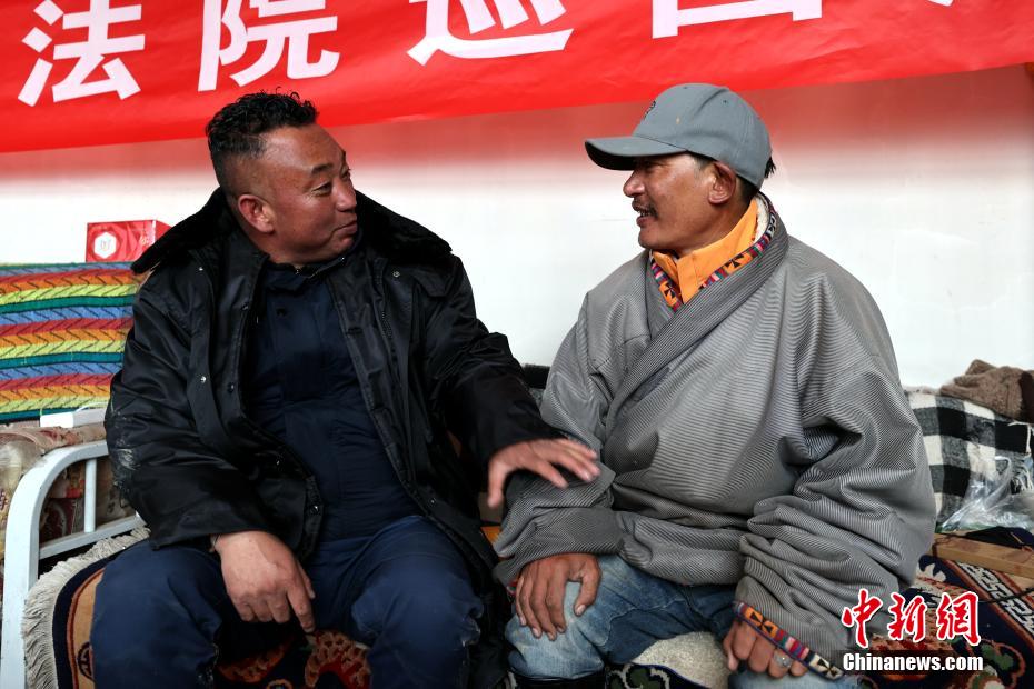 6月3日,在青海省果洛藏族自治州瑪多縣花石峽鎮(zhèn),瑪多縣人民法院“馬背法庭”的法官在牧民家中完成訴前調(diào)解。薛蒂 攝