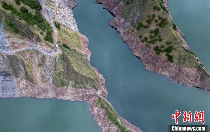圖為6月25日,航拍蜿蜒山間的天龍湖。(無人機(jī)照片)中新社記者 王磊 攝