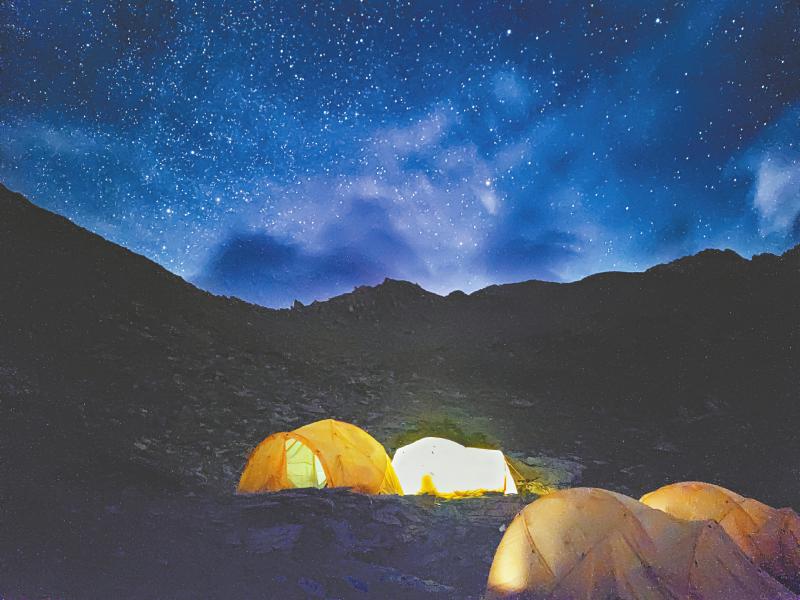 游客在四姑娘山星空下露營。 扎西 攝