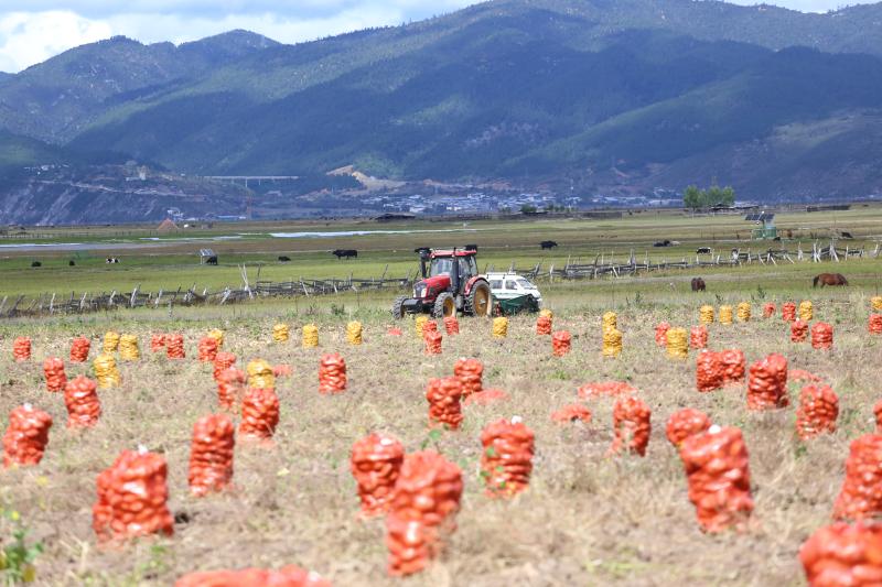 10月13日,記者在位于香格里拉市建塘鎮(zhèn)尼史村的香格里拉市滇茂農(nóng)業(yè)科技有限公司馬鈴薯種薯培育基地看到,百余畝馬鈴薯種薯喜獲豐收,工人們正忙著將機(jī)械采挖出的種薯分揀、裝袋、上車,一派繁忙景象。