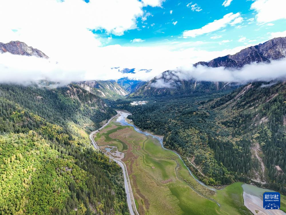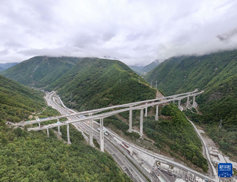 這是10月11日拍攝的正在建設中的九寨溝—綿陽高速公路(無人機照片)。九綿高速開通后,從成都至九寨溝縣的時間將從原來的8小時縮短至4小時。新華社記者 王曦 攝